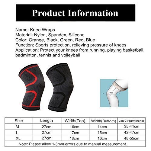 -. Feature : ✅HIGH QUALITY, COMFORTABLE WEAR - Our knee pads are designed to fit ergonomically,effectively compress muscle groups, increase knee cell activity without cutting blood circulation or restricting movement. Promote heat generation in the knees and breathable fabrics to dissipate heat in time. / ✅SPORT PROFESSIONAL EQUIPMENT - Effectively promote the acceleration of blood transport in the knee area during exercise, awaken the cells of the knee area, compress the cloth to provide temporary explosive force and muscle tension to the knee, and protect the knee from external damage. / ✅RELIEVES PAIN AND PROTECTS JOINTS - Relieves joint pain, tendonitis, swelling after surgery, as well as strains and sprains. Reduce inflammation or swelling after injury and help you recover from surgery. Suitable for meniscal tears, ACL, MCL, PCL, gingivitis and knee problems. / ✅KNEE STABILIZER - Fix the patella in place and stabilize the ACL, PCL, LCL and MCL ligaments. The knee joint applies a slightly compressed beneficial massage movement during the movement, thereby improving the sensory motor function of the entire joint. / ✅NON-SLIP SILICONE - During fitness time, squats, weightlifting, yoga, and fitness, even if there is a lot of sweat, there is no need to worry about it. Durable compact silicone ring can provide stability.