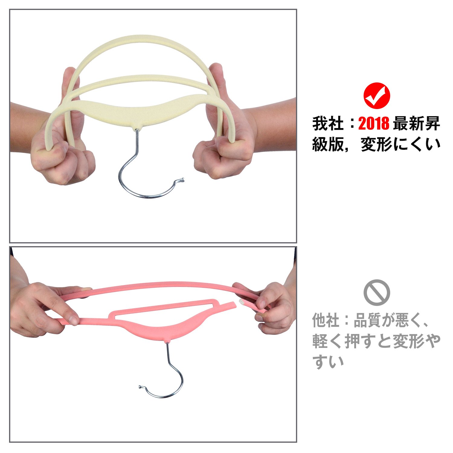 優れた性能:製品は多くの方向に180度曲げて折れることがなく、耐荷重4.5kgまでです。各季節の服に適します。360度回転フック、どんな場所と角度でもかけられます。使用のとき色落ち着かなくて毛が抜けないです。肩のところで凹凸の人間化の設計で、アイロンを使用した後服はしわにならなく変形しない完璧な状態を維持します。