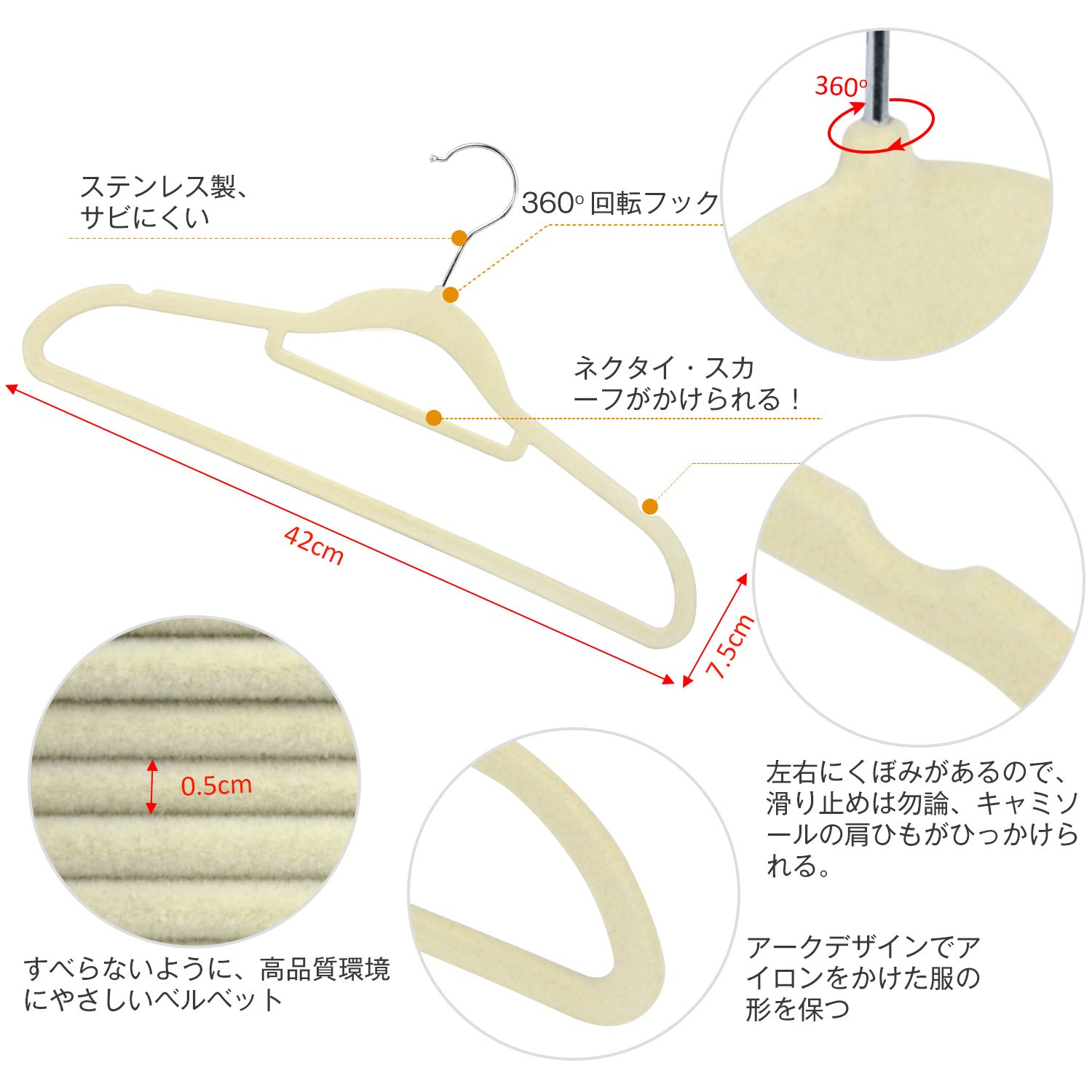 最適の材料ユニット:abs+pp 高品質の環境に良いビロードです。手にやさしくて色落ち着かないです。ハンガーフックは金属で製品の高級感を感じます。