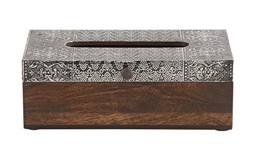 Deco 79 28766 Rectangular Aluminum and Wood Tissue Box, Darkbrown/Silver