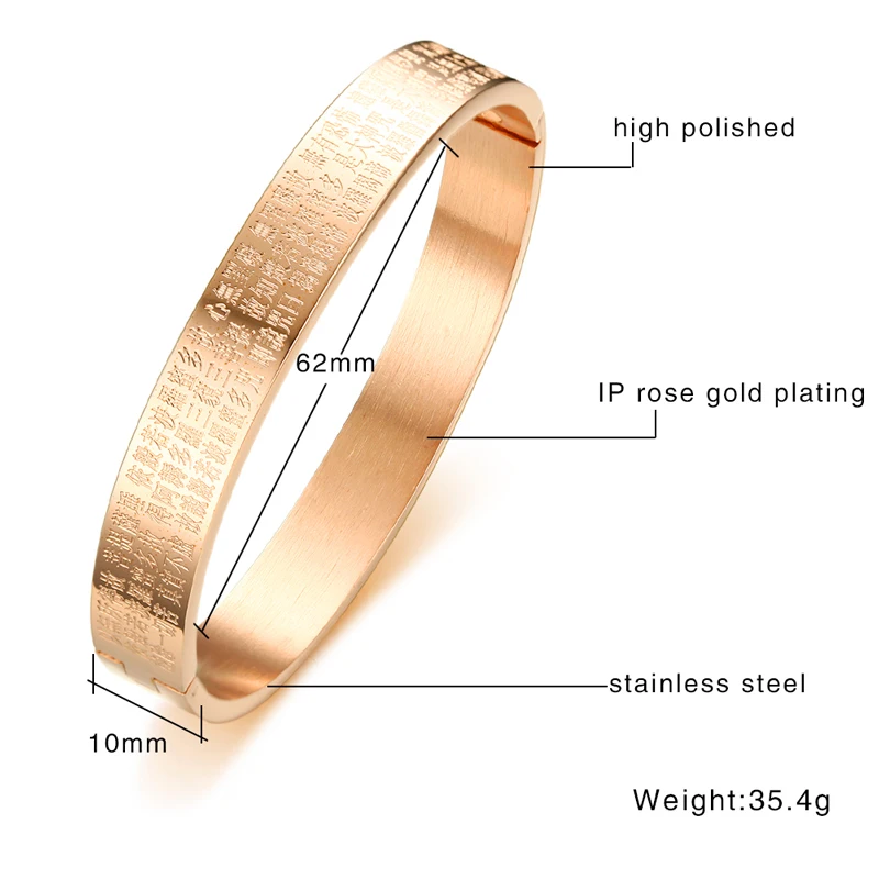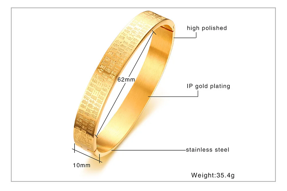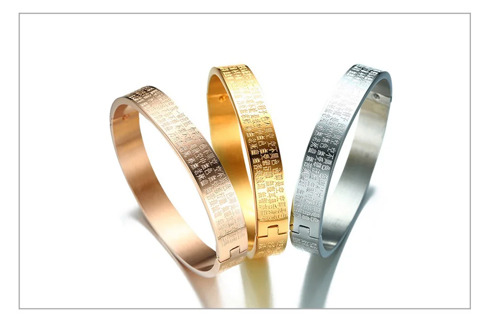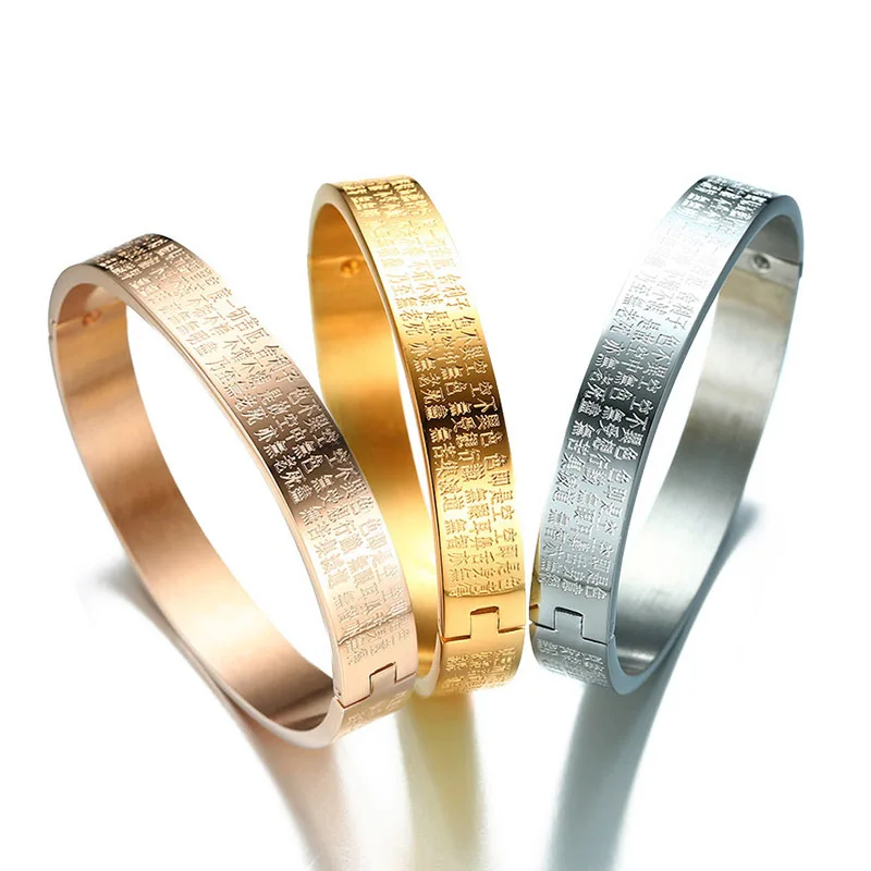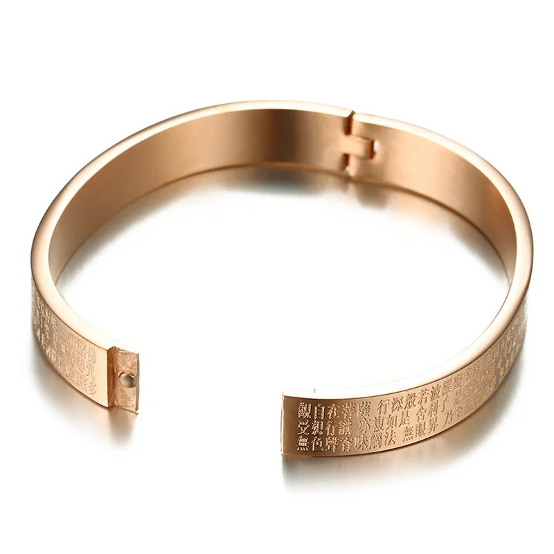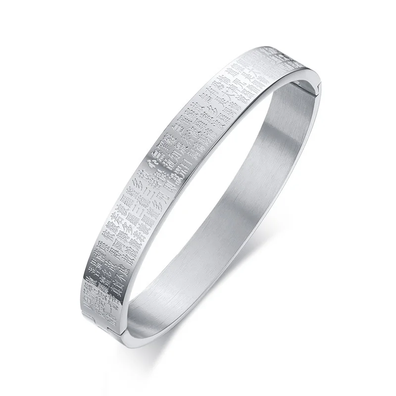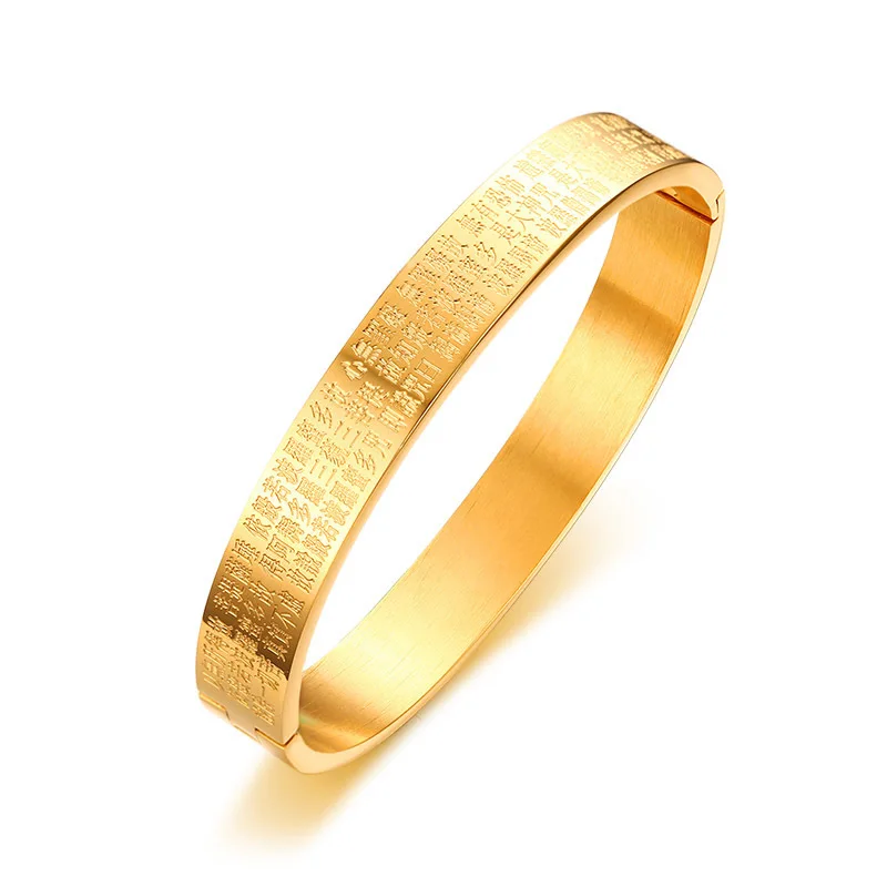 Feature:Engraved Buddhism Text Cuff Bangle for Women