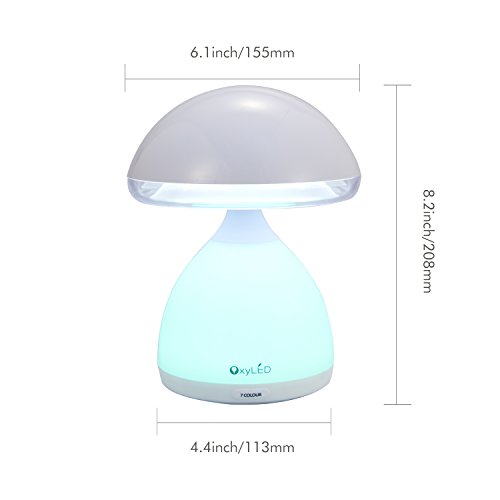 Here at OxyLED, we know how hard it is to put the kids to bed, especially after they've had that decadent slice of chocolate pie just after dinner and are still bouncing with energy. So we've come up with a bright solution -- the OxyLED Mushroom Kids' Bedside Lamp. A perfect bedtime companion, switch on the 7-color changing modes and let the soothing fading of soft colorful lights sing your child into a sweet slumber. And if the nightmare monster decides to strike, a tap of the mushroom cover will light up the bedroom -- and assure little Timmy that he's still safely tucked in bed. Best of all, with a built-in rechargeable 1000 mAh battery, go socket-free for 4 hours and use it as a handy light when the power runs out, or plug it into a USB socket and let the warm glow of lights accompany your child through the night.