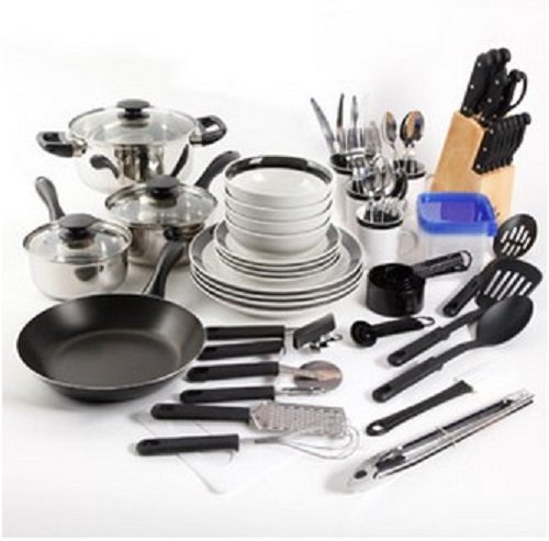 - Title : Large Kitchen Combo Set. This 83 piece kitshen starter set has everything you need. Stainless steel cookware, dinnerware, flatware, storage containers and gadgets for stirring, flipping and chopping.
