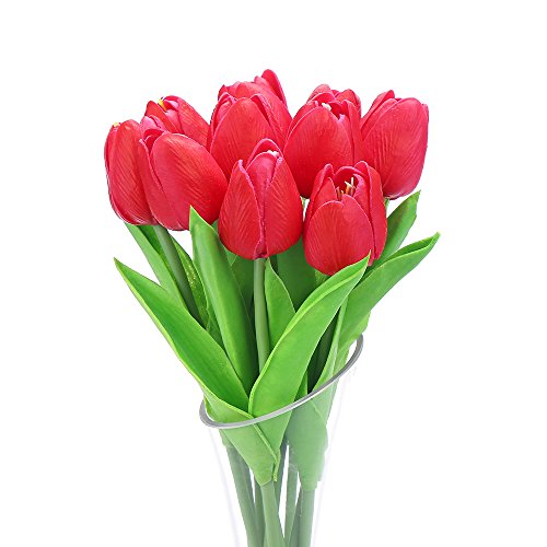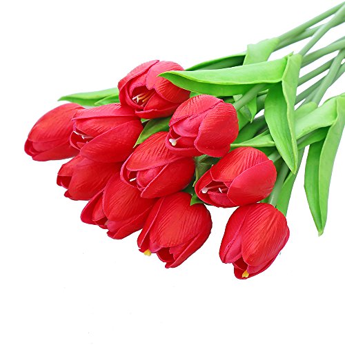 Decora 10Pcs/Bag High Quality PU Holland Mini Tulip Artificial Flower Real Touch for Wedding,Room,Home,Hotel,Party Decoration and Holiday Gift(Red)