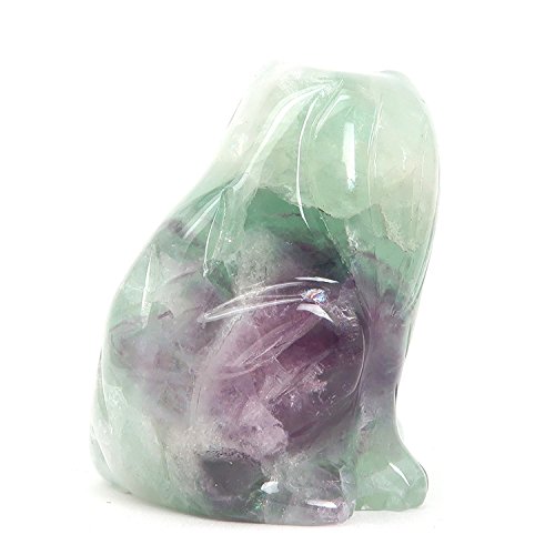 One-of-Kind: Natural Fluorite is polished into your new crystal healing cat. Fluorite's striped inclusions make it as unique and wonderful as a rainbow. This is a translucent white, green and purple stone with rainbow sheen carved into a sitting cat figurine.