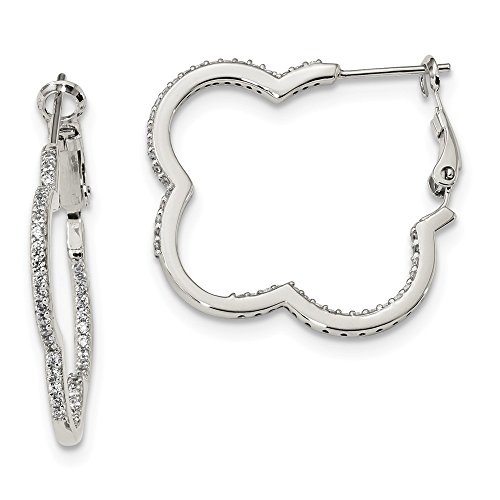 Solid 925 Sterling Silver In & Out CZ Cubic Zirconia Clover Omega Back Hoop Earrings (29.4mm x 28.5mm)