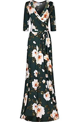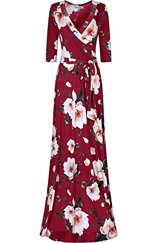 Product DescriptionThis sleek and sexy maxi wrap dress is a must have! This gorgeous wrap maxi features a v-neck line, 3/4 sleeves, and ties around the waist making it flattering for all body types. This maxi can be effortlessly dressed up or down. Perfect for a work, traveling, vacation, bridal/baby showers, weddings, party, date, or other events. The stretch and comfort of the dress also makes it perfect for stylish maternity wear! Pair it with heels, a clutch, and statement necklace for a more formal look or with sandals and a sunhat for a relaxed spring or summer outfit. However you wear it you will look great and feel comfortable from day to night!