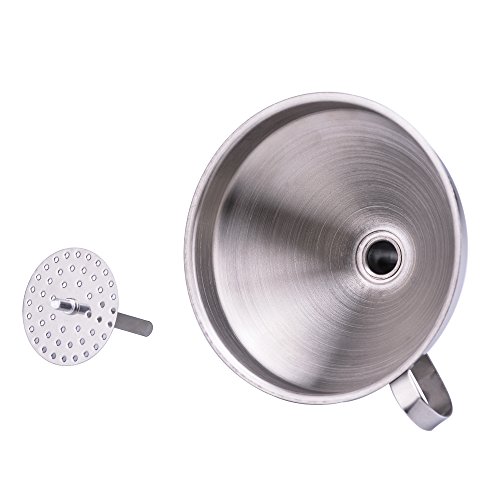 - FUNNEL WITH STRAINER - A detachable strainer is also included in order to filter solid from liquids just like that. Just place the strainer in the funnel during the filtering process and get ready to be amazed. A small yet might tool for filtering larger solids as wellnow there's nothing you can’t filter!