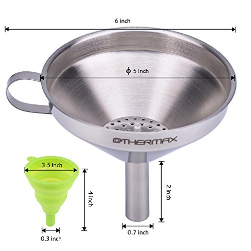 - EASY TO CLEAN AND STORE: OTHERMAX'S Stainless steel funnel is easy to store save space, the ergonomic handle for hanging in your kitchen cabinets. It is easy to clean up after use. Just put it into dishwasher or simply wash with soapy water.