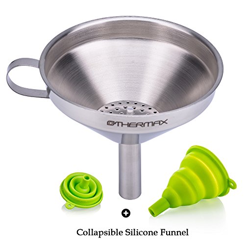 Funnel Set by OTHERMAX, Stainless Steel Kitchen Funnel with Strainer/Filter and Silicone Collapsible Funnel, Wide Mouth Metal Funnel for Cooking Oils and Transmission of Liquid, Dry Powder Ingredients
