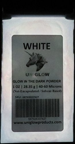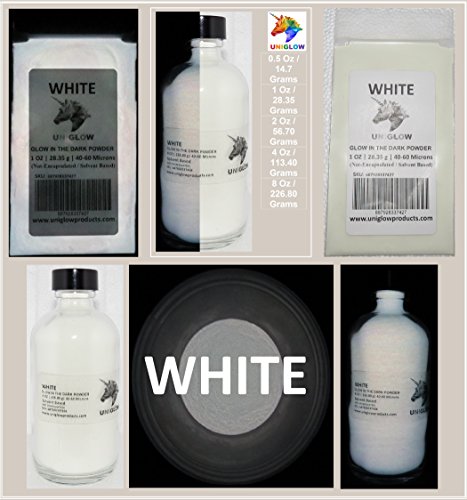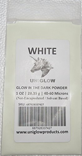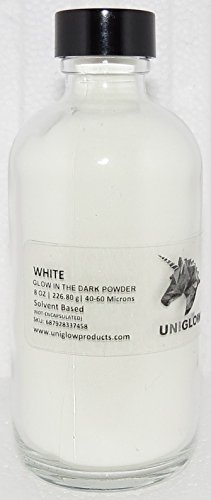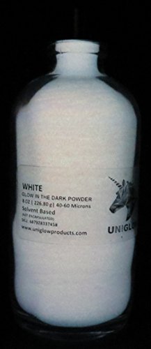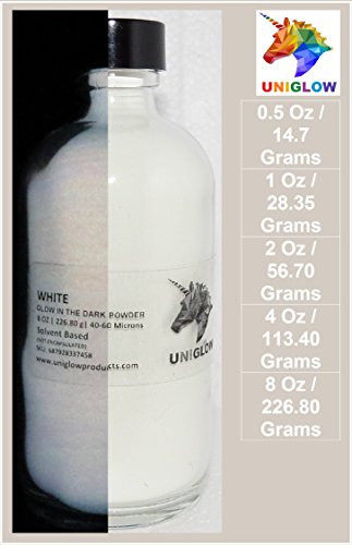 - PREMIUM Glow in the Dark Pigment Powder (2 Oz / 56.70 Grams, White) LONGEST LASTING GLOW POWDER. RECOMMENDED FOR ALL COLORLESS MEDIUM. INK. PAINT. PLASTIC RESIN. GLASS.etc