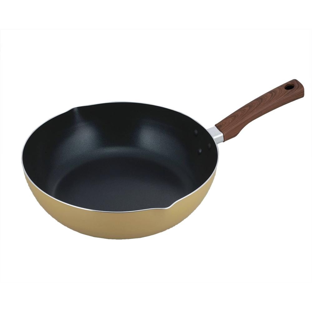 「ダイヤモンドコート」特殊ふっ素樹脂加工でこびりつきにくいだけではなく、耐摩耗性に優れています。木目プリントのシリコーンコーティングハンドルはすべりにくく、握り心地も抜群です。 |