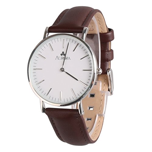 -. Title : Aurora Men's Casual Business Analog Quartz Waterproof Wrist Watch with Deep Brown Leather Band-Silver