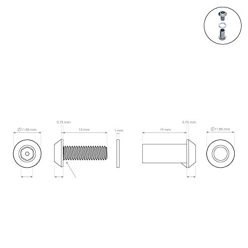 Studio : Hella Slingshots Publisher : Hella Slingshots Binding : Misc. Product Description 19mm Pin-in-Hex?Button Head Binder Bolts with M5 L-Key. Fits many frames with brazed on seatpost clamps.??Key Features:? Size: 19mm? Head Type: Button Head? Material: Stainless Steel 304 Male Screw, Nickel Plated Carbon Steel Female Screw? Quantity: 1 Bolts, 1 M5 L-Keys? Weight:?7.6g 0