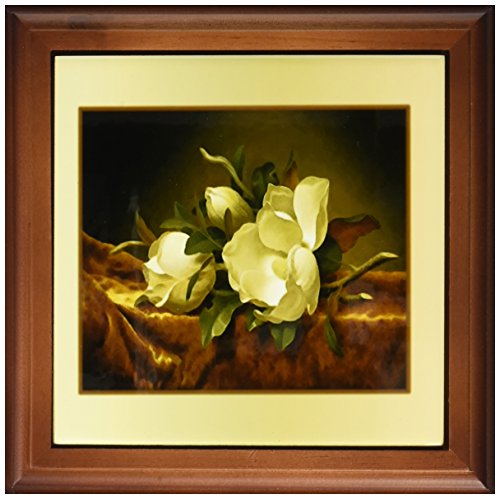 3dRose ft_163200_1 Image of Heades Vintage Painting of Magnolias on Gold Velvet Framed Tile, 8 by 8-Inch