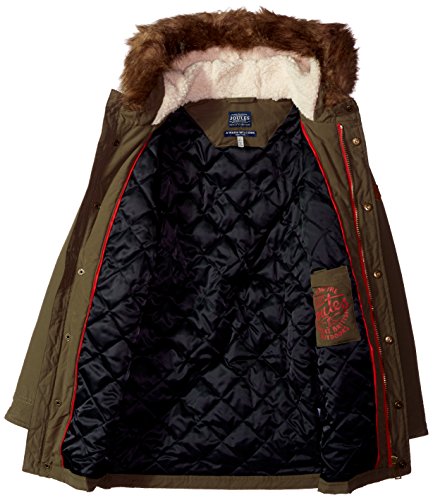 We’ve added a fleece lined hood with a faux fur trim to this winter parka to keep him extra warm, but the faux down padding, quilted lining and zip and popper fastening should help too. There’s plenty of detail for him to discover too, such as an internal pocket for all his treasure that he couldn’t possibly leave home without.Feature