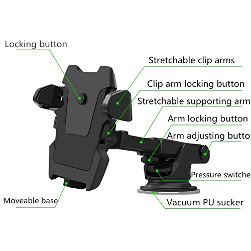 Car Phone Holder,Universal Cell Phone Mount for iPhone 7/7P/6s/6P/5S/SE/4/4s,Samsung Galaxy S5/S6/S7/S8, Google, LG, Huawei,Sony and More