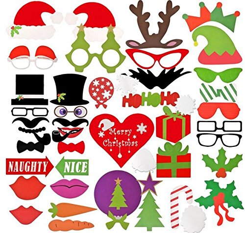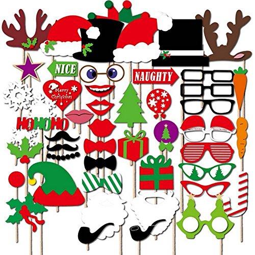 (Set of 50)Merry Christmas Photo Booth Props, DIY Party Favors & Supplies, New Year's Eve Decorations Art Crafts