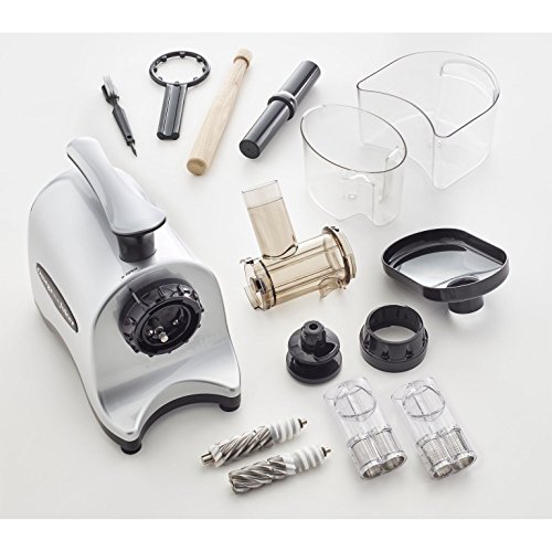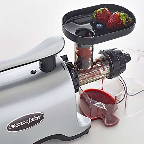 Omega's new Twin Gear juicer crushes mixes AND squeezes produce to get the highest extraction possible from your produce. With an outlet adjusting knob with spring tension, pressure is created in the machine to squeeze out all the juice from the pulp, which means more juice from your produce! Includes two juice screens which allow for the adjustment of pulp levels. Great for juicing fruits, vegetables, wheatgrass, herbs, nuts for nut milks and more.Feature