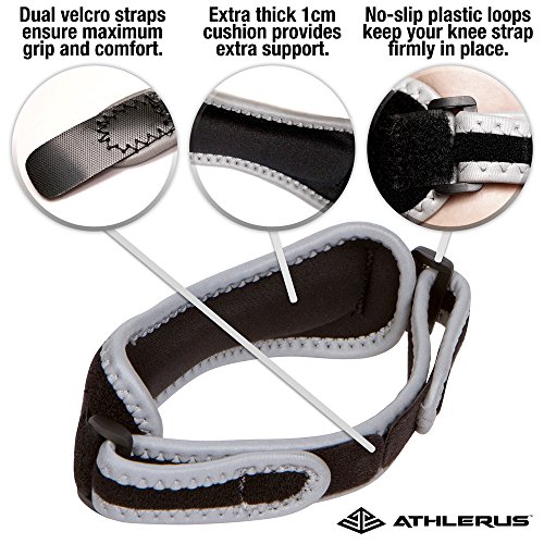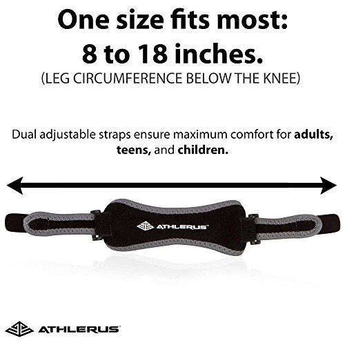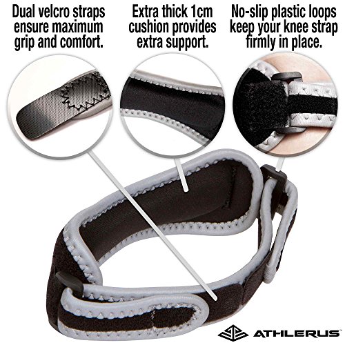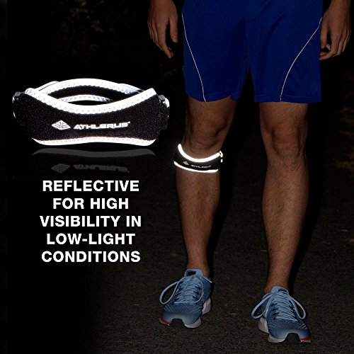 To help our patellar tendon support straps go the extra mile for those suffering from Patellar Tendonitis, Jumper's Knee, Chondromalacia, or Osgood Schlatter's disease, our lightweight knee brace is engineered from the ground up: >Its ERGONOMIC SHAPE and LOW PROFILE DESIGN contours to the unique form of your knee, creating a comfortable wrap that targets problem knee pain and relieves pressure: compressing, cradling, supporting, and stabilizing, all while allowing maximum freedom of movement. >The NO-SLIP PLASTIC LOOP won't slip, slide, or pinch, even with the straps pulled extra tight. >The brace's MOISTURE-WICKING sleeve material keeps your knees cool and dry, ensuring maximum comfort as you use the knee brace. >Our ODOR RESISTANT, ANTIMICROBIAL technology prevents unpleasant odors from lingering after use. >REFLECTIVE BY NIGHT, TWO-TONE BY DAY. Reflective outline lights up in the dark, ideal for exercise in low-light conditions. The black and white color scheme is understated during the day, a minimal look that complements all forms of attire. >It's IDEAL FOR HIKERS, useful pad equipment that can help prevent alleviate the pain associated with lengthy downhill off road sections that can rattle even healthy knees and leave them throbbing. GET OUT THERE AND DO WHAT YOU LOVE At Athlerus, we believe there's nothing like the natural high you get from exercise, whether it's a leisurely walk, family recreation, or a more strenuous workout, hike, or run. Our knee brace is also great for individual sports like badminton, weightlifting, climbing, and powerlifting, or practicing a team sport such as basketball, soccer, or football. Our knee stabilizer braces and accessories offer men and women the chance to engage in the sports they love, while striving to achieve their full potential. 0