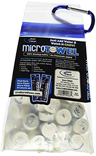 Euroclean Microtowel 100 Pack and Wipe Compressed Towel Capsule Tablets 8x10” Cloths Biodegradable, No chemical Added