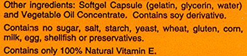 - LegalDisclaimer : Contains only 100% Natural Vitamin EContains no: sugar, salt, starch, yeast, wheat, gluten, corn, milk, egg, shellfish or preservatives.Caution:  Do Not Eat Freshness Packet.  Keep in Bottle.Natural color variations may occur in this product.Store in a cool, dry place.  Please Recycle.