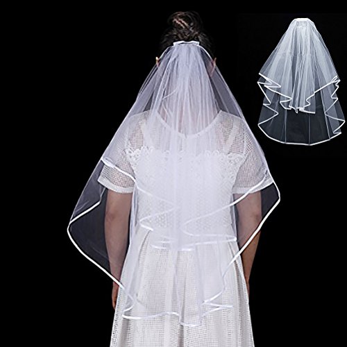 ✔White double layer Edge wedding veil with comb for easy placement and soft touch to you, a fancy and beautiful look.