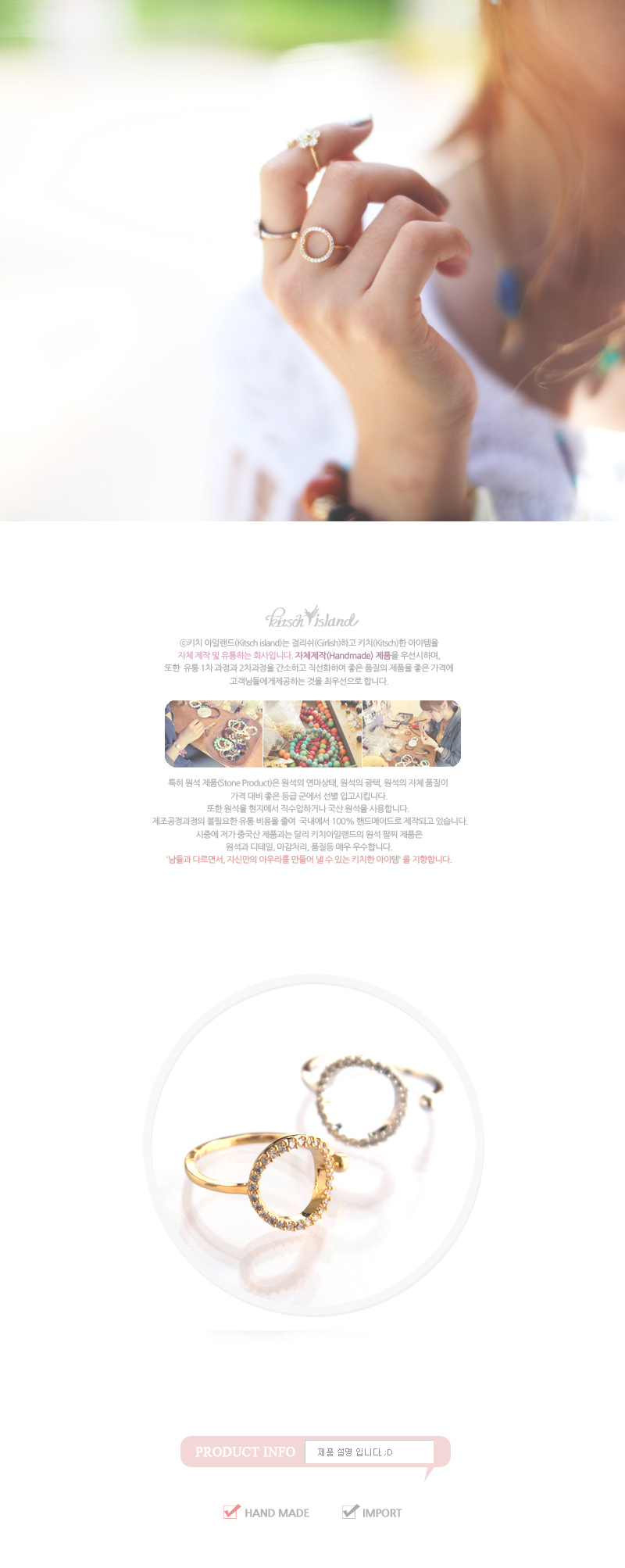 손가락 둘레레 맞게 곡선처리로 마감되어 착용시 불편함이 없어요!라인이 끊어지는 스타일이기 때문에 앞에서 보았을 때,