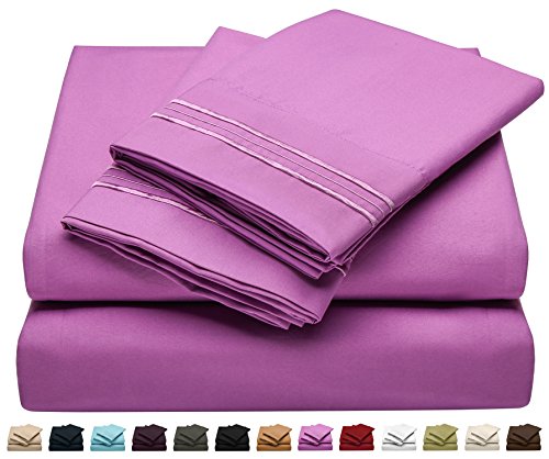 King Size Bed Sheet Set - Soft Brushed Microfiber Luxury Comfort Sheet Set - 1800 Thread Count Bedding Linens – Magenta Purple - Victoria Collection by Jessie Porter