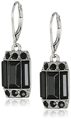 1928 Jewelry Silver-Tone Black Octagon Drop Earrings
