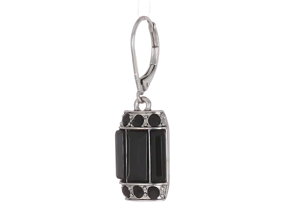 Silver-tone drop earrings featuring octagon-shape black stone with black crystal accents