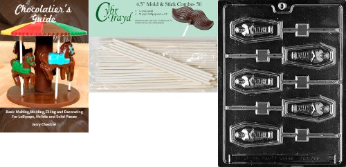 Cybrtrayd 'Casket Lolly' Halloween Chocolate Candy Mold with 50 4.5-Inch Lollipop Sticks and Chocolatier's Guide