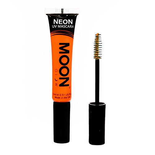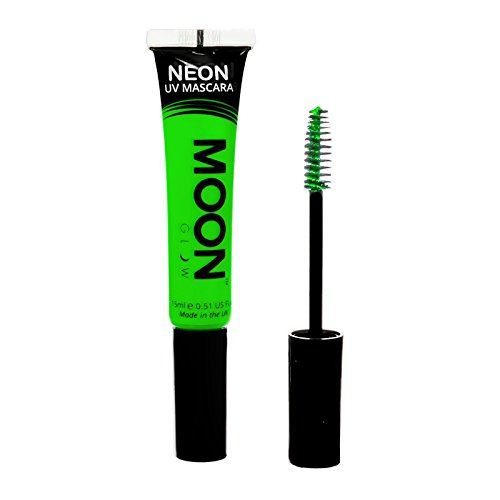 Create stunning effects around the eyes using Moon Glow Neon UV Mascara. Bright, neon coloured in natural lighting, they fluoresce spectacularly under UV Lighting / Blacklights, producing an incredible UV Glow. Perfect for clubbing, parties, festivals, UV sports, stage performances and anywhere with UV Lighting. To use, simply apply around the eyes using the brush wand applicator. Avoid Contact with eyes. After use, simply remove using makeup wipes. All Moon Glow cosmetic and special effect products are proudly made in the UK. Conforms to EU1223/2009. Moon Glow products are not tested on animals.Feature
