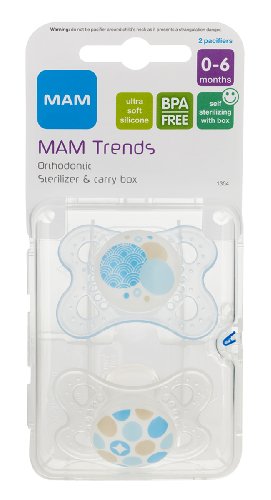 MAM Trends Silicone Orthodontic Pacifier, Boy, 0-6 Months, 2-Count