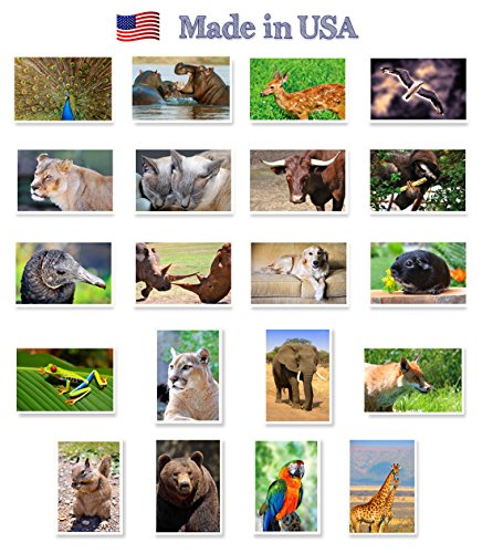 -. Title : ANIMALS & BIRDS postcard set of 20. Post card variety pack with wild and domestic animal and bird theme postcards. Made in USA.