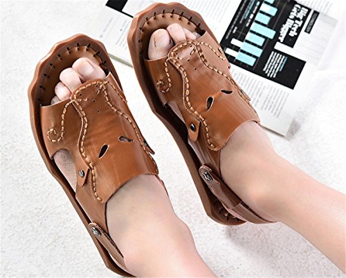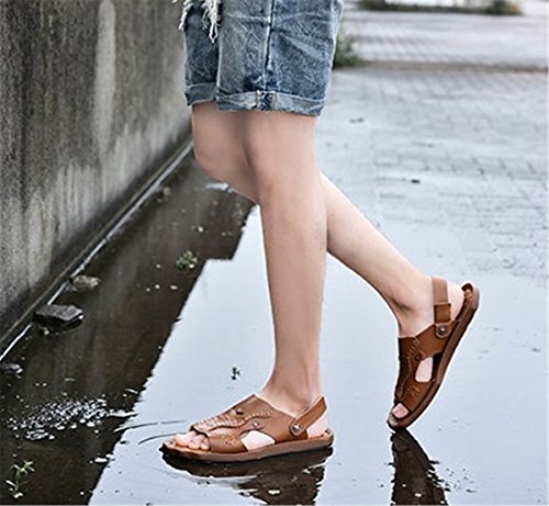 Product:sandals Color:Black,Brown Material:cow split leather,TPR TPR sole Style:leisure A summer sandal.Simple closure provides a great fit,lightweight,comforted.