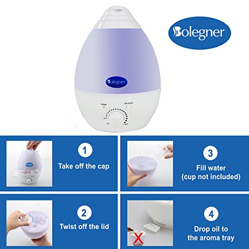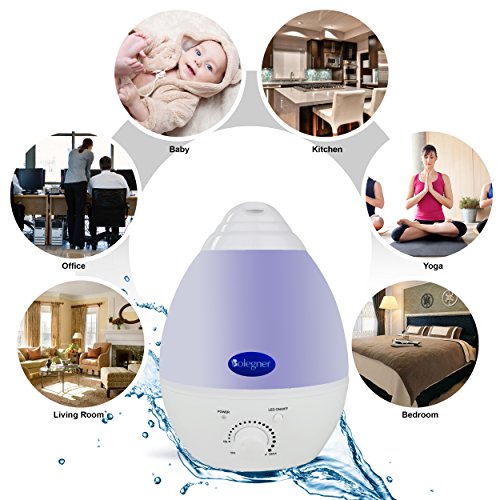 Do you know Low humidity can lead to dry skin, irritated sinuses and itchy eyes? Would you like to add moisture in the air of your room to help you breath better? Would you like to lay in bed cozy with 7 color cool LED night lights changing? The BOLEGNER Multi-Color Cool Mist Ultrasonic Humidifier is the perfect humidifier, It adds moisture to the air to help you sleep better, cough less and alleviate dry sinuses, It's designed to circulate humidity throughout large areas. The back of the humidifier also has a built-in essential oil tray to make the unit an aroma diffuser as well, It's easy to refill and no need to unplug and take the whole set to refill, simply leave the cap off the base turn the cap upside down to fill water and put it back down on the base. Specifications Of The BOLEGNER Humidifier: Dimension: 6.3" x 6.3" x 9.5" Material: PP/AS/ABS Capacity: 1.3 Litres, Enough To Last A Whole Night On Low. Rated Voltage:100-240V 50/60HZ Working Time: 6 Hours On The Maximum Flow And Will Work For Up To 7-8 Hours On Lower Humidity Levels. Features Of The BOLEGNER Humidifier: Cozy Cool 7 Color LED Night Light That Will Continue To Run After The Humidifier Shuts-Off When Water Tank Is Low. Great Combination Between Humidifier And Aroma Diffuser. Setting Allows You To Choose Desired Humidity Levels. Automatic Safety Shut-off When The Reservoir Is Empty. 360° Degree Nozzle Lets You Direct The Mist In Any Direction. Whisper Quiet Operation Won't Interface Your Sleep. Easy To Clean Just Wipe Base With A Soft Damp Cloth. Rinse Tank With Water And Let Air Dry. Package Contents Of The BOLEGNER Humidifier: 1 x BOLEGNER Cool Mist Humidifier 1 x User Manual Note: Oil is not included in this package 0 |