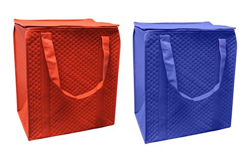Earthwise Insulated Grocery Shopping Bag with Waterproof Leak proof Lining and Zipper Top Closure Large Collapsible Keep Food Hot or Cold ( Pack of 2 )