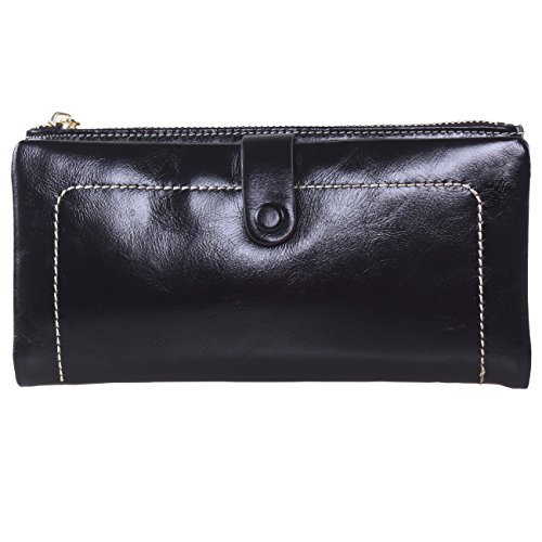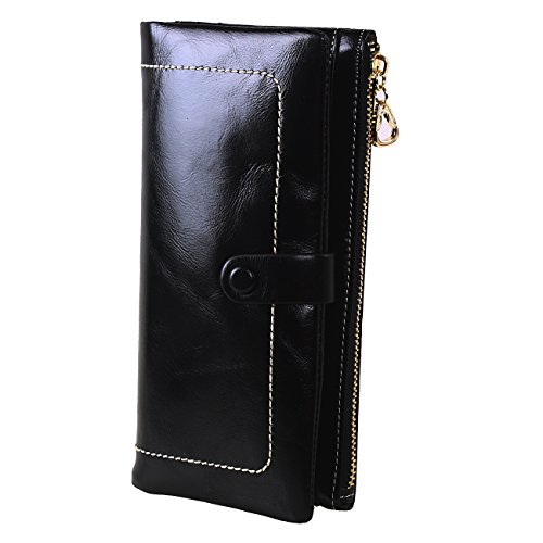 -. Title : AINIMOER Luxury Large Women's Genuine Leather Long Zipper Wallet Ladies Clutch Purse