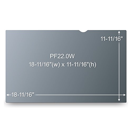 - Feature : Keeps your personal or confidential information safe from prying eyes / You'll see the information on your display while people on either side only see a darkened screen / Designed to fit widescreen desktop LCD monitors with a diagonally measured 22" viewing screen and a 16:10 aspect ratio / Actual filter dimensions are 18 11/16" wide x 11 11/16" high (474 mm x 297 mm) / Includes your choice of two easy-to-use attachment methods / Reversible, matte side reduces glare and reflections / Lightweight, thin, frameless design / Protects display from dirt, debris and scratches / Cleans easily with a soft cloth and water / Great for high traffic areas and open office environments / Limited 1-year warranty / Fits screen sizes of 22-Inch diagonally measured (Width 18.7-Inch Height 11.7-Inch) / Screen data is visible only to persons directly in front of the monitor / Provides 1.5 times more effective privacy than competitive models / Helps protect your fragile LCD screen from damage / Filter is reversible. Choose matte side for anti-glare or glossy side for increased clarity