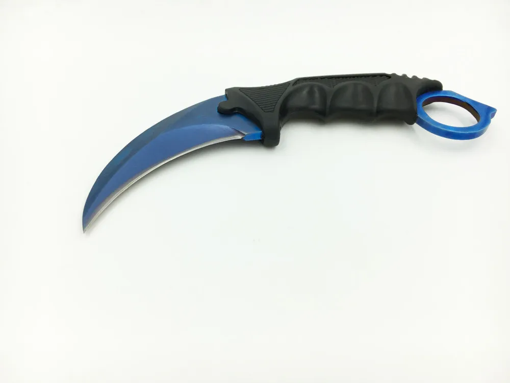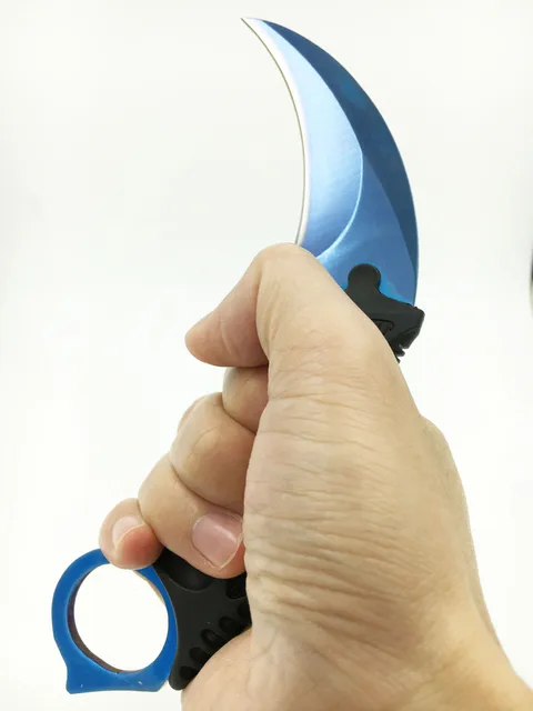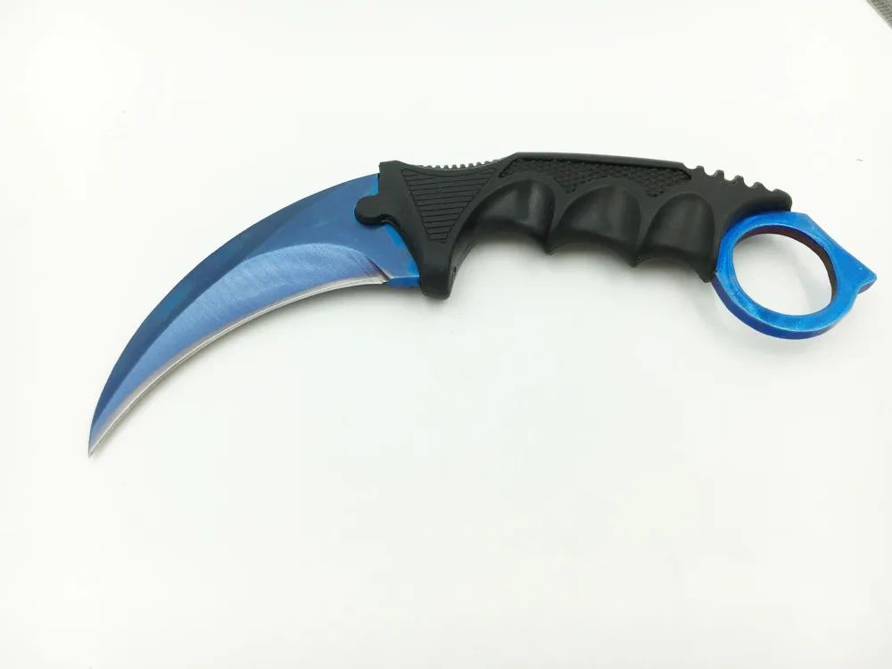 | [해외] CS 이동 카운터 스트라이크 발톱 Karambit 나이프 목 칼 칼집 호랑이 치아 진짜 게임 칼 발톱 칼 캠핑 블루 컬러 |