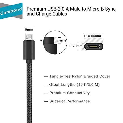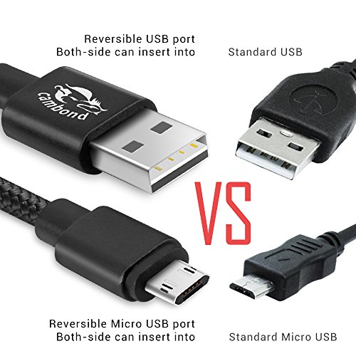 Micro USB Cable, Cambond® 10FT Double-Sided Reversible A Male to Micro B Sync and Charging Cable Braided, using for Micro USB Connecting Devices(Black)