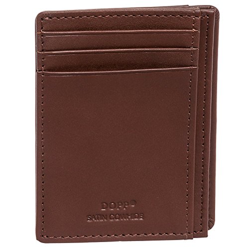 A sleek and modern design meets handcrafted quality in this Dopp Regatta 88 Series Front Pocket Getaway Wallet. Crafted of genuine satin cowhide leather, this slim wallet features 3 card slots, 1 ID window and a middle compartment for storing folded cash. Finished off with the Dopp logo embossing, this Getaway Wallet is perfect for those everyday essentials. Measures 4.25" x 3.25" x 0.25.