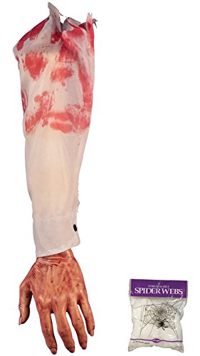 Bundle: 2 Items - Severed Bloody Hand/Arm Piece White and Free Spider Web (Comes with Free How to Live Stress Free Ebook)