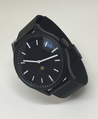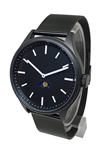 -. Title : Bauhaus Sky Moonphase Watch - BLACK Steel modern design moon age time