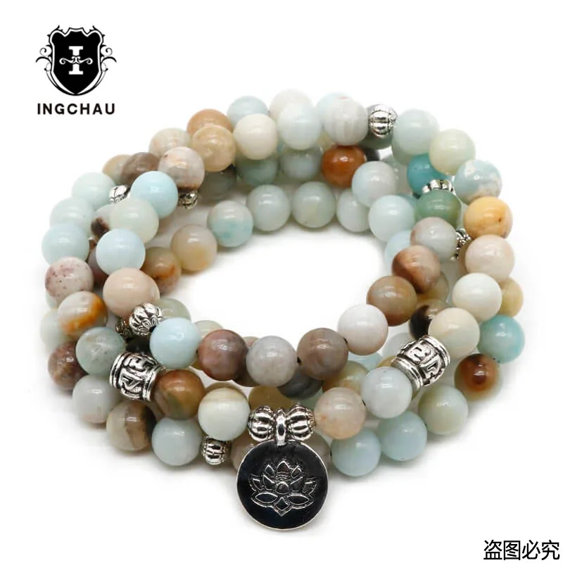 Lotus Bracelet:Amazonite Bracelet,108 beads necklace