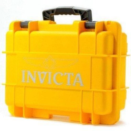 Durable yellow plastic exterior with a rubber handle. Egg crate memory padding on the inside of the lid. The interior contains 8 watch slots made of gray foam material. Box Measurements: 11-1/2" L x 15-1/2" W x 6-1/2"H. Individual Slot Measurements: 3-1/2"L x 2-1/4"W x 3-1/2"HFeature
