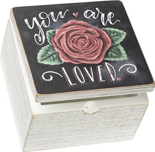 You are Loved - Primitives by Kathy 4 x 4 x 3 Hinged Sign Box with Rose Image