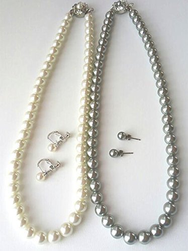 -. Title : フォーマルネックレス ホワイトカラー イヤリングセット 7mm珠43cmネックレス