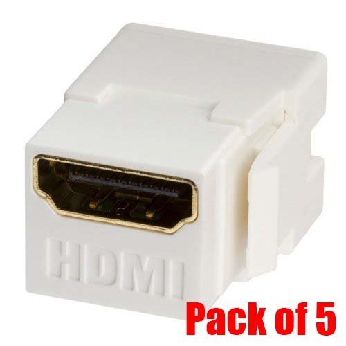 iMBAPrice (Pack of 5) HDMI Inline Keystone Coupler, Snap in for HDMI Wallplate Gold Plated - White